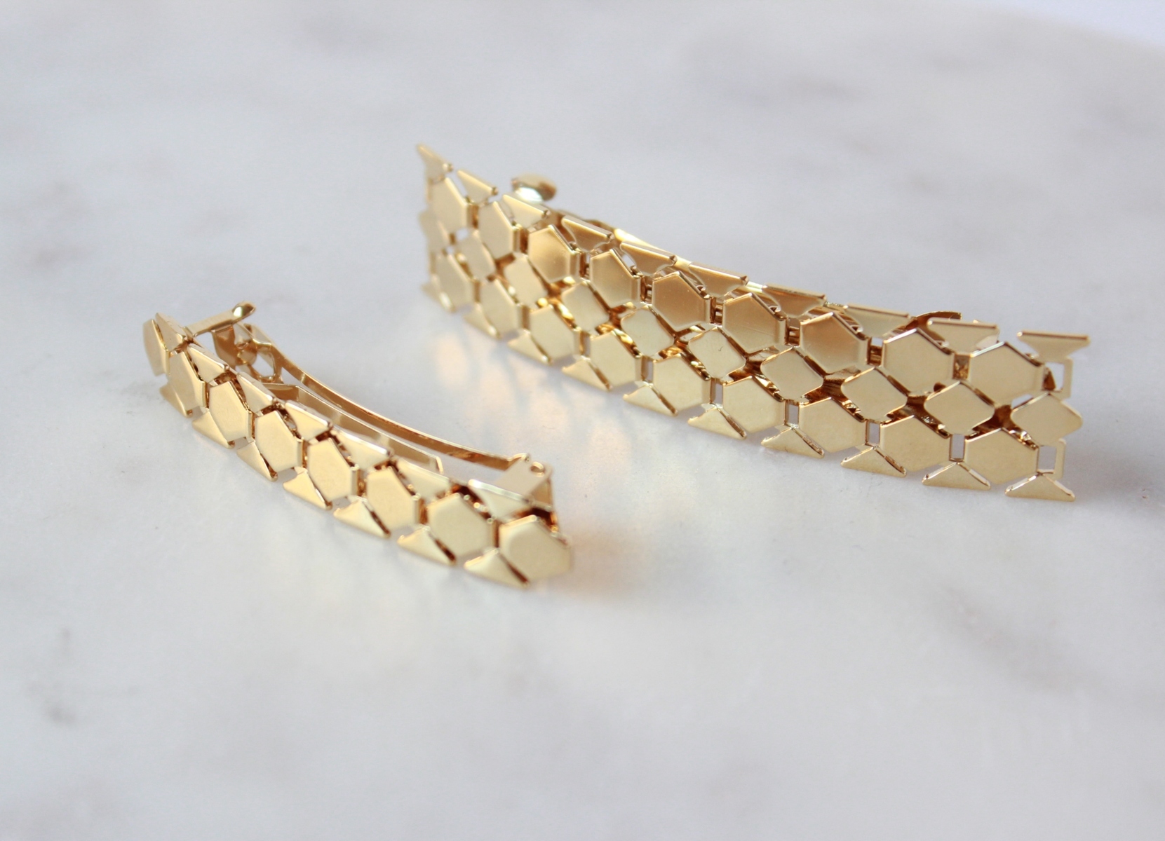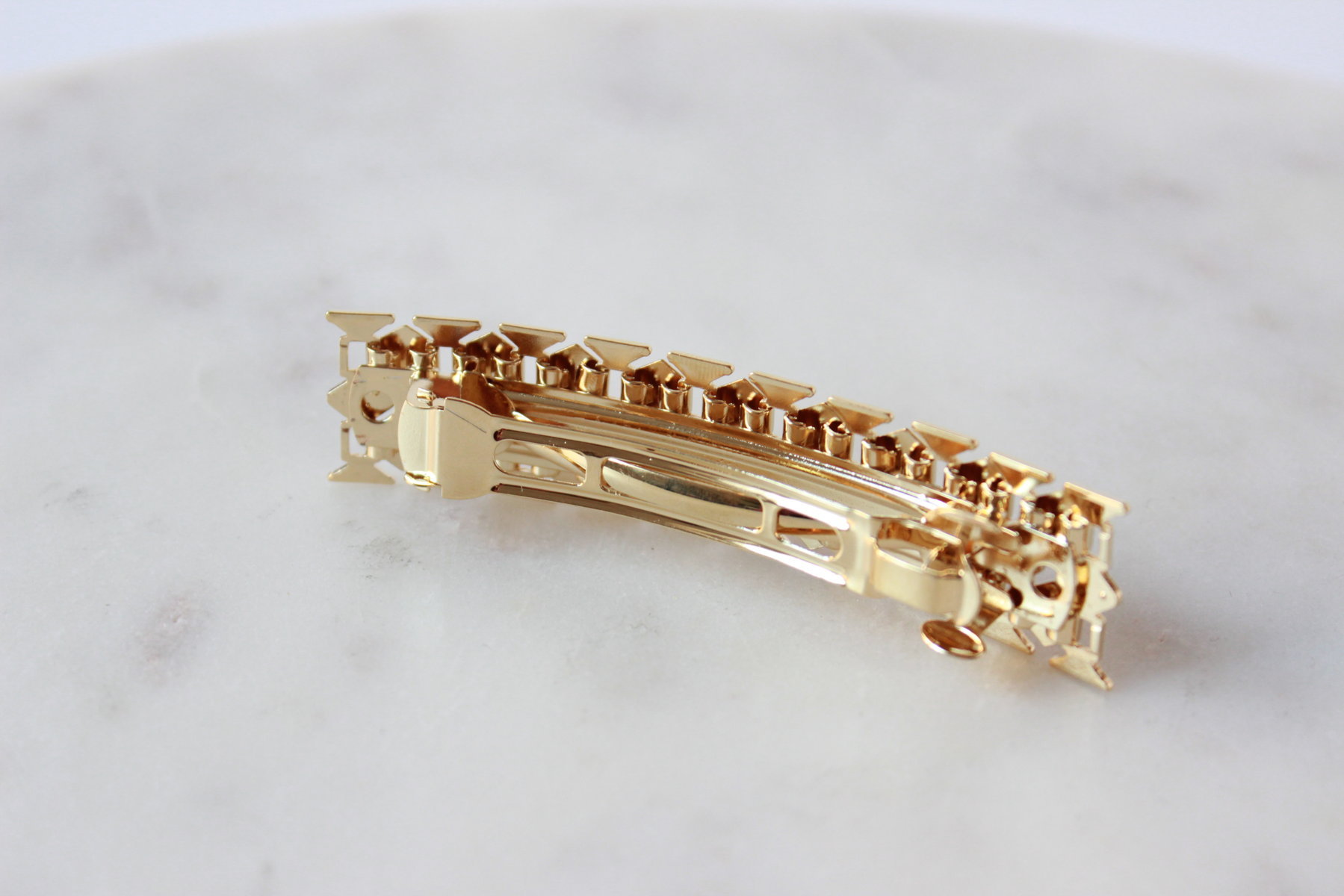 Barrette à cheveux à clipser, en laiton doré à l’or fin 24 carats, finition or champagne brillant