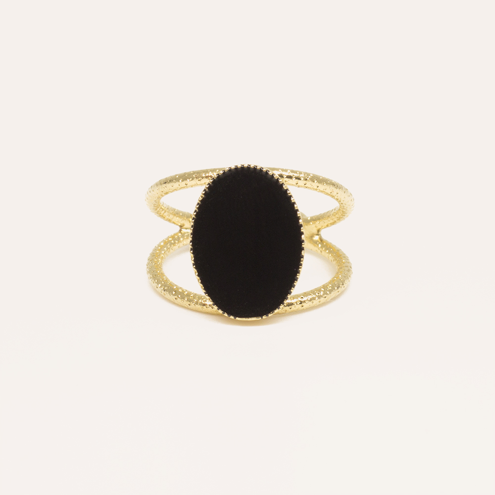 Bague ajustable, avec corps de bague texturés et cabochon en résine, en laiton doré à l’or fin 24 carats