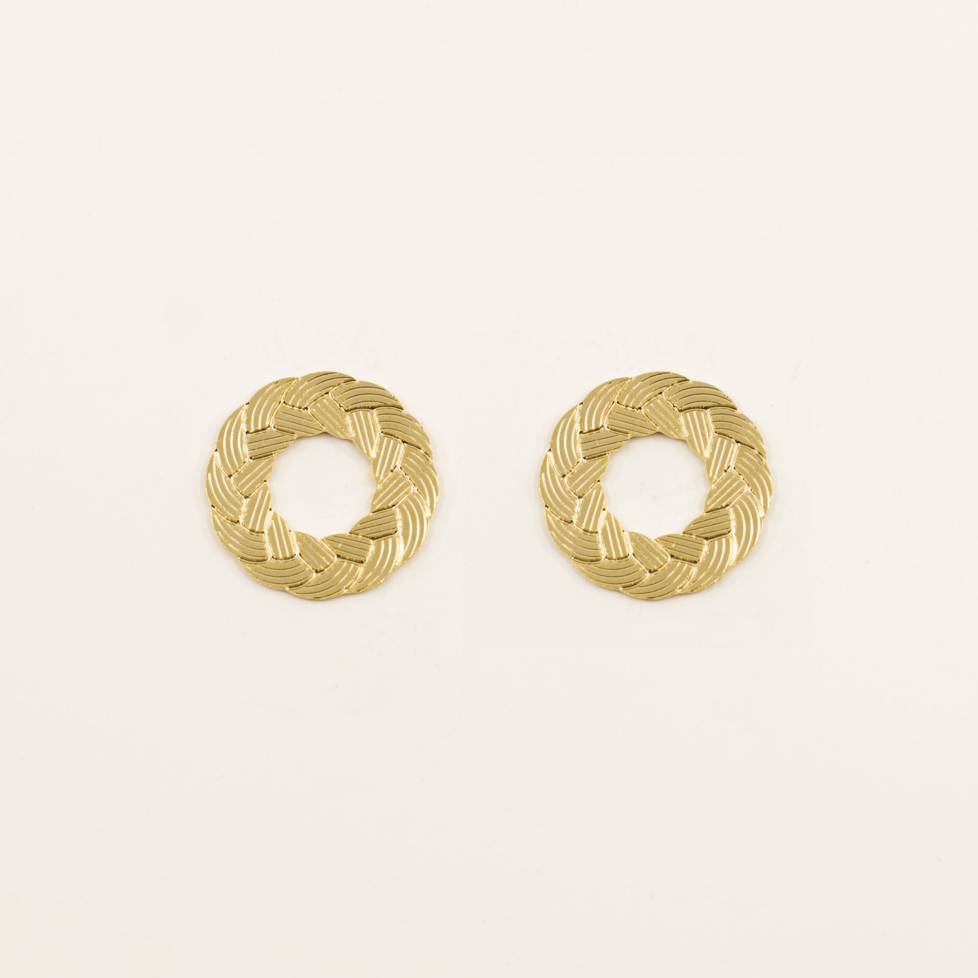 Boucles d’oreilles rondes avec tiges soudées à l’arrière. Existe également en grand modèle.