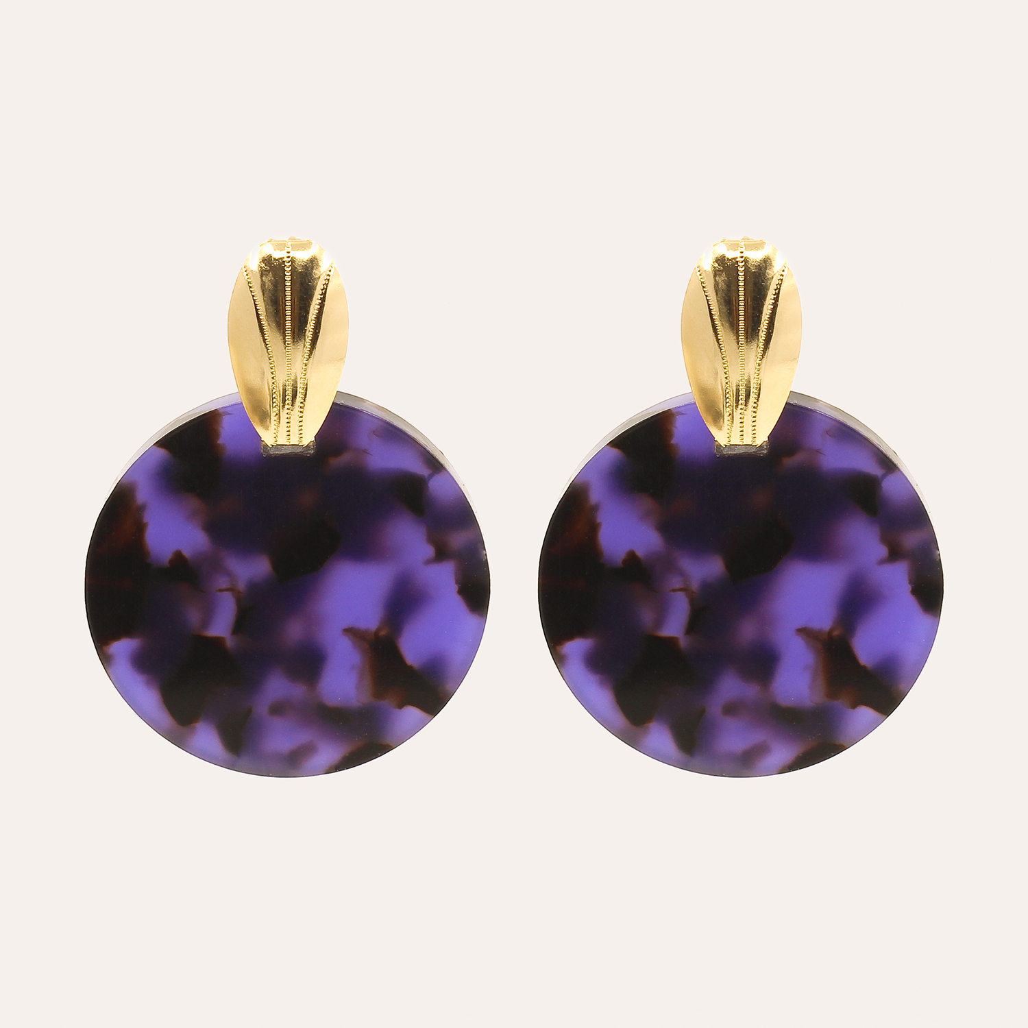 Les boucles Loulou ont ce petit côté rétro très années 70 qui nous fait totalement craquer. Elles sont fabriquées à partir d’acétate de cellulose, de haute qualité en provenance d’Italie, découpé ensuite par nos soins. Les attaches sont en laiton doré à l’or fin.