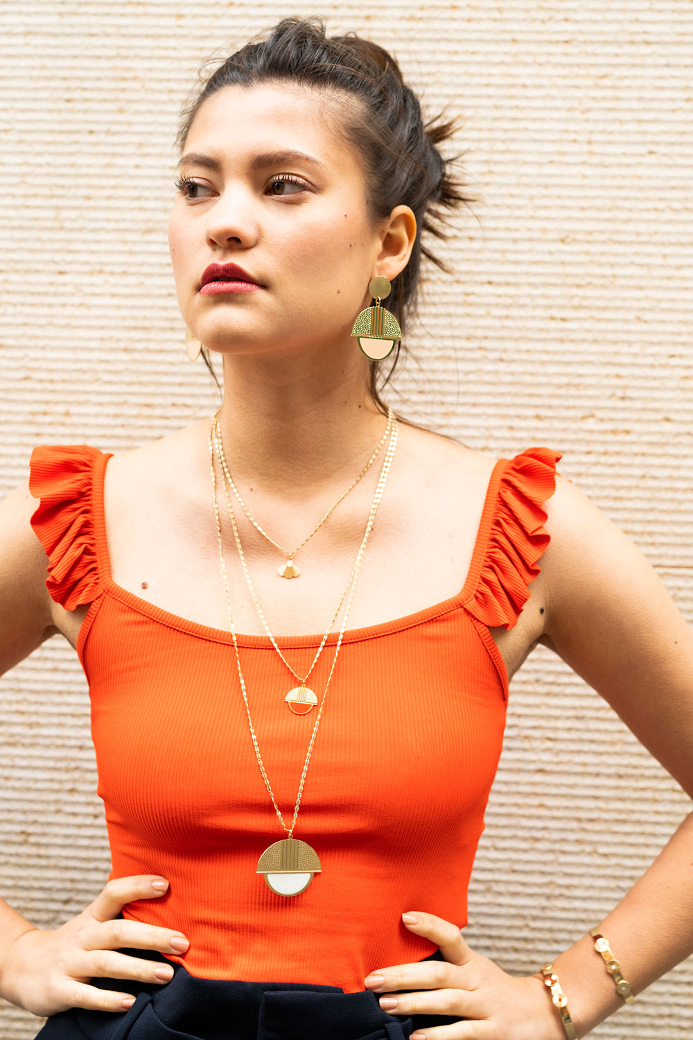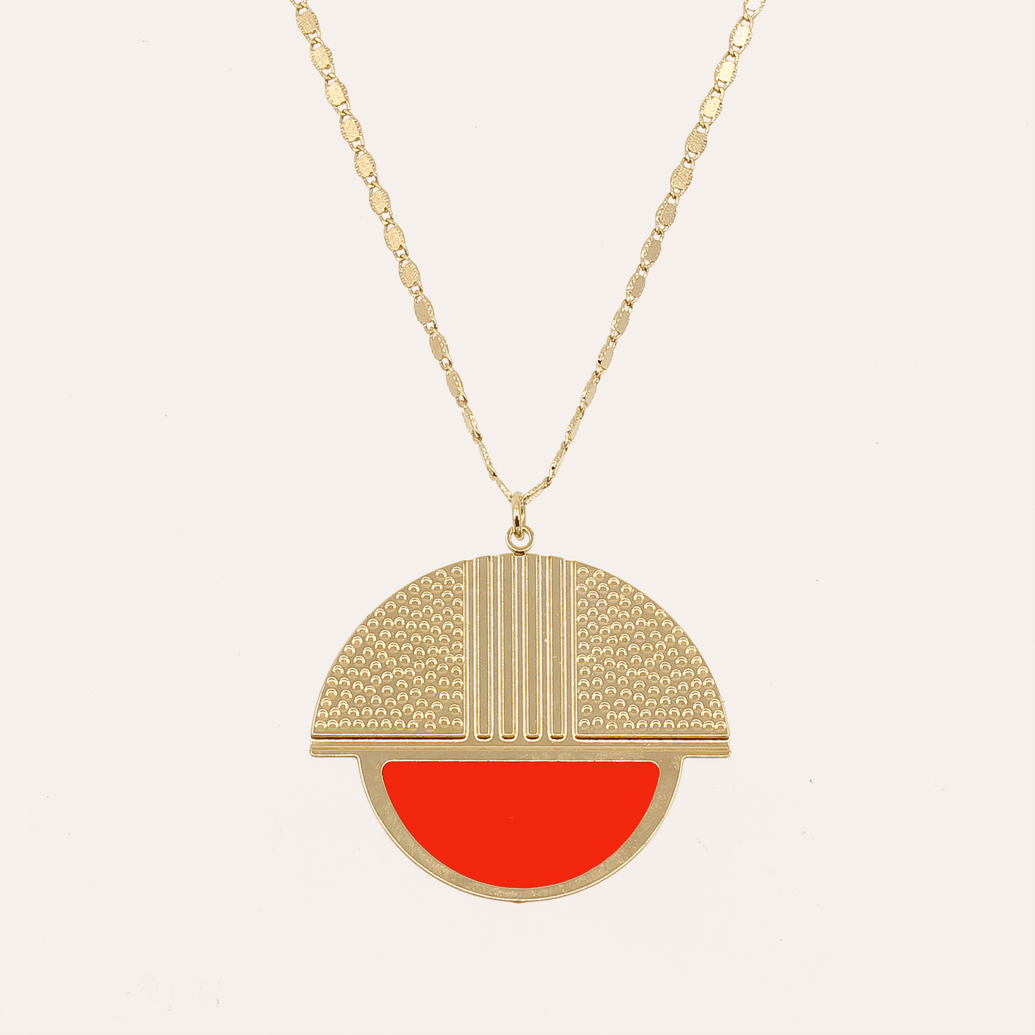 Le sautoir Taylor se porte comme un maxi grigri aux allures Art Déco. A porter seule ou jouez l’accumulation avec nos colliers médailles.